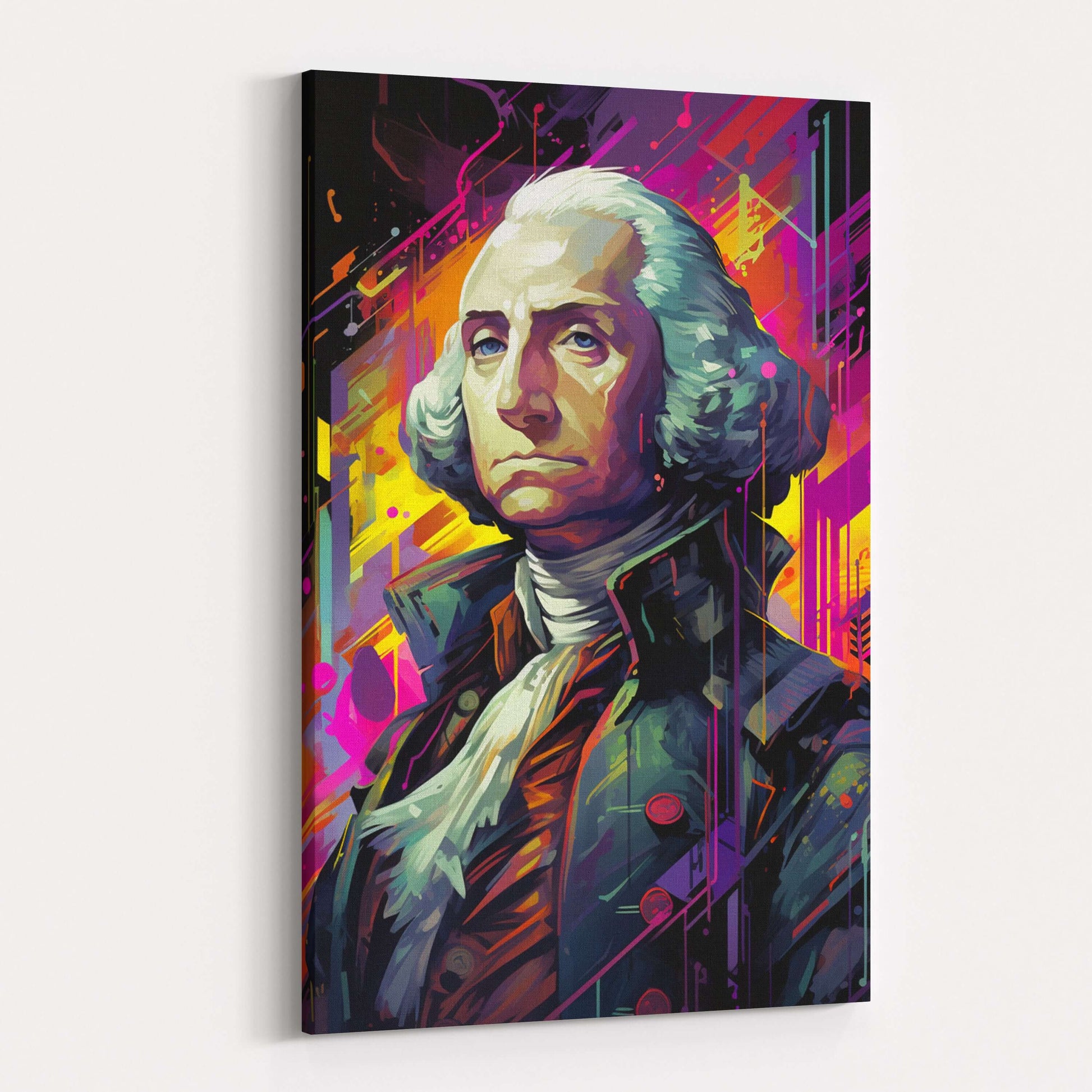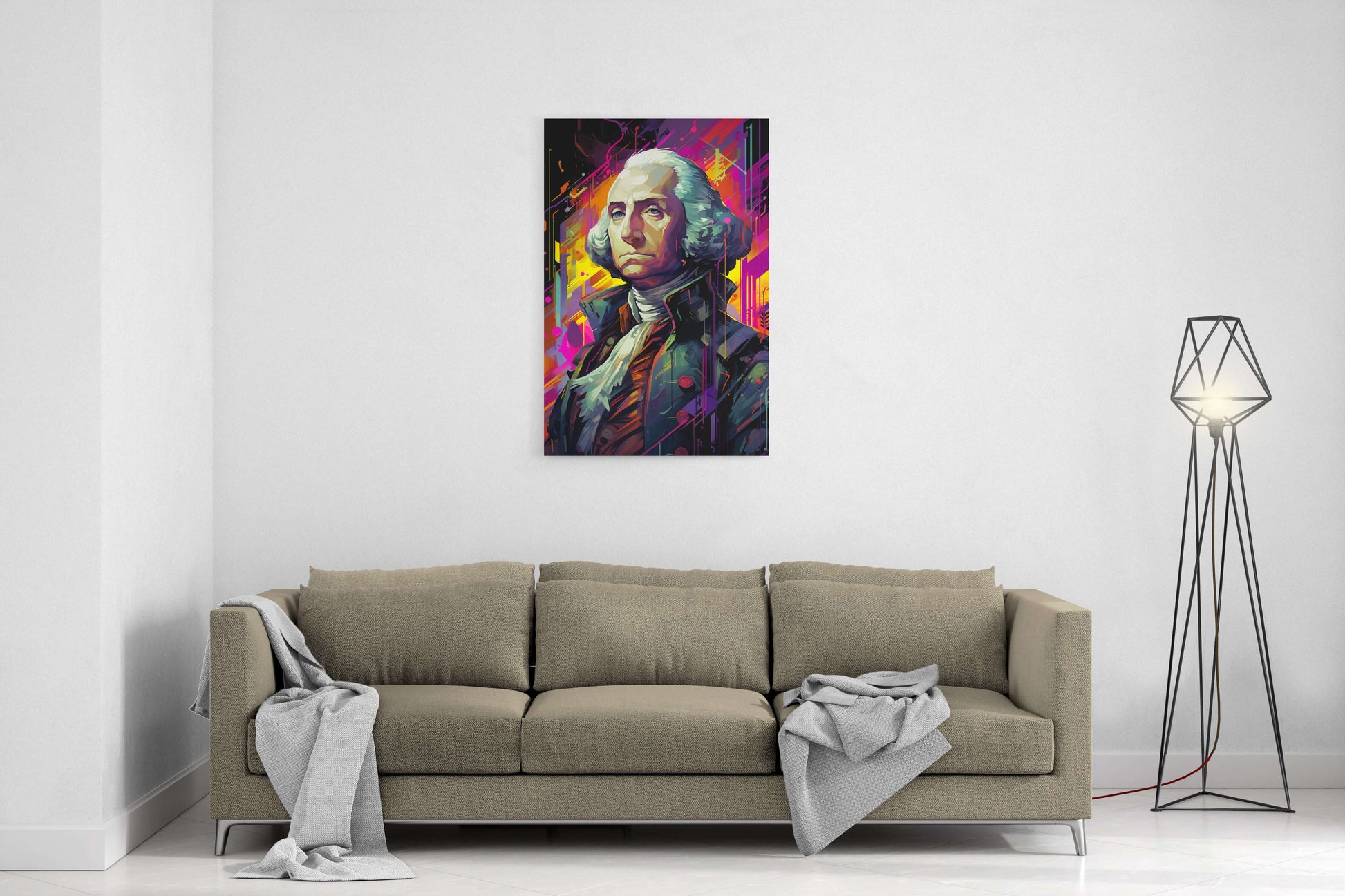 Immerse yourself in a world where George Washington meets cyberpunk cool. Dressed in sleek, futuristic attire, this canvas brings a fresh perspective to the iconic figure. The 24"x36" size ensures it's a standout piece in your home or office.